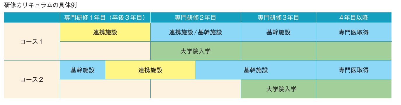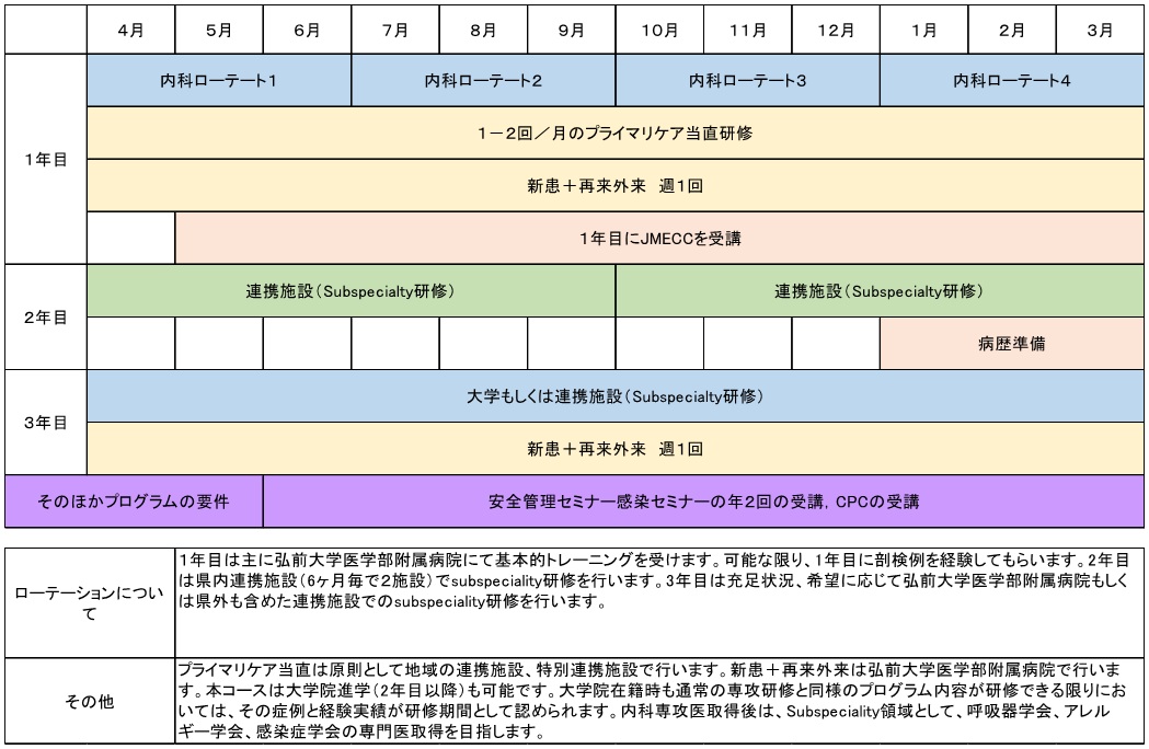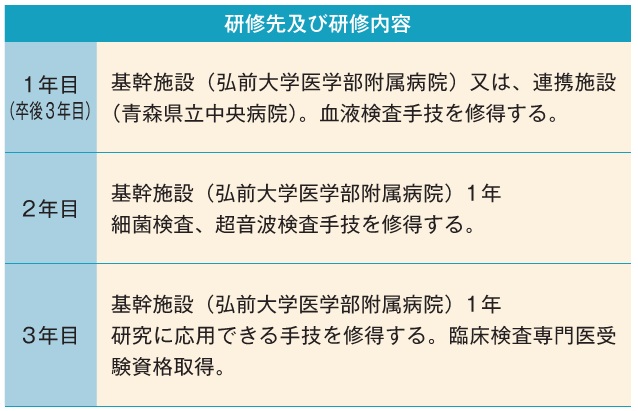 1年目 弘前大学医学部附属病院(全般) 2年目 連携施設 3年目 弘前大学医学部附属病院(全般) |